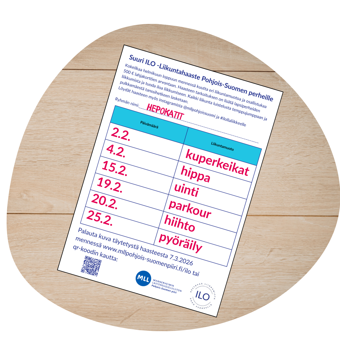Löydät haasteen myös Instagramista @mllpohjoissuomi ja #ilollaliikkeelle