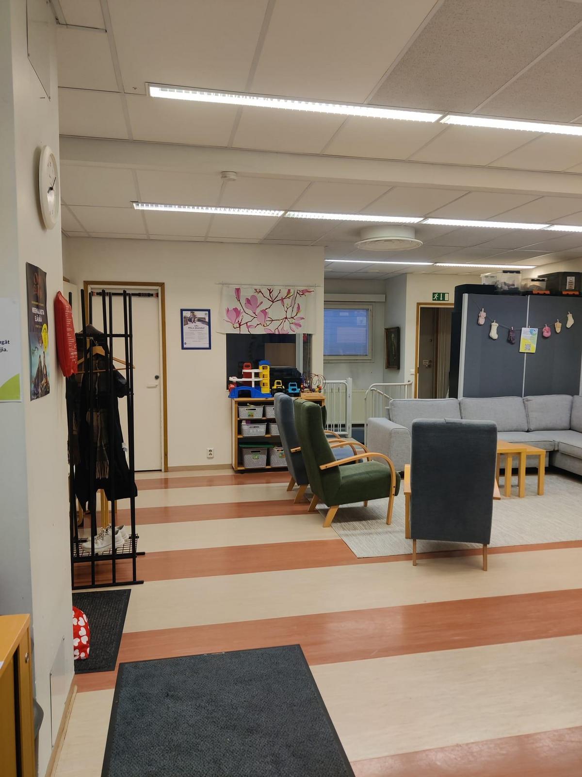 Ryhmät kokoontuvat piiritoimiston katutasossa olevassa tilassa. Piiritoimistolla on leikkitilaa, wc, vaipanvaihtopaikka ja vaunuparkki. Tilasta löytyy myös mikro. Voit ottaa mukaan omat eväät.