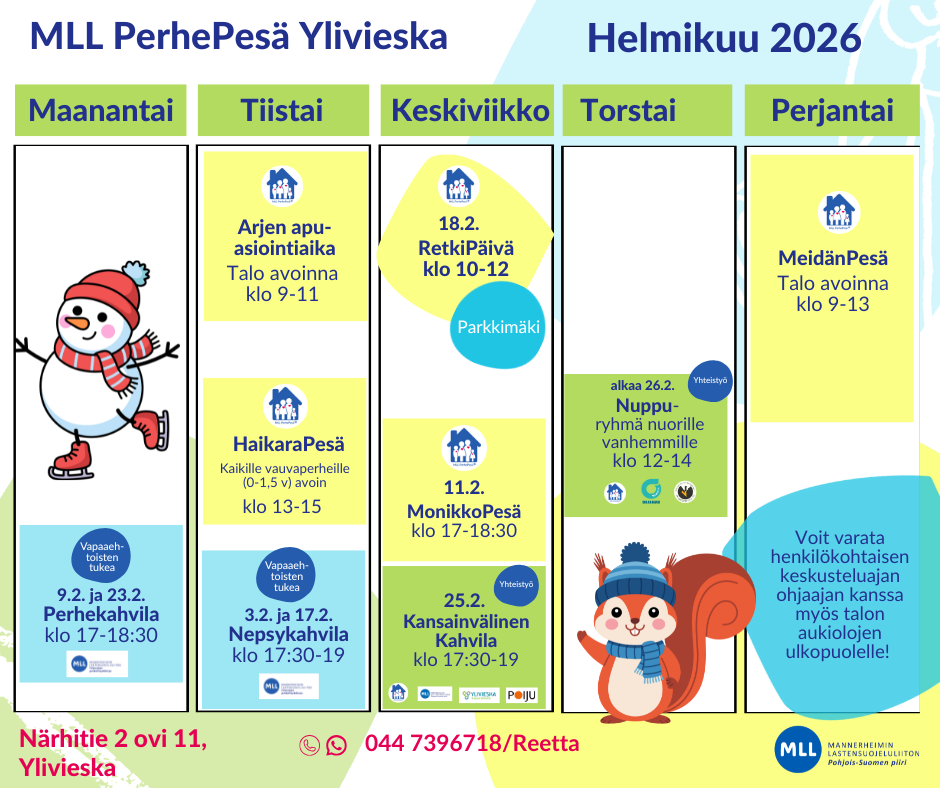Ajankohtaista tietoa toiminnasta ja aikatauluista löytyy Instagramista, Facebookista ja WhatsApp-kanavalta.