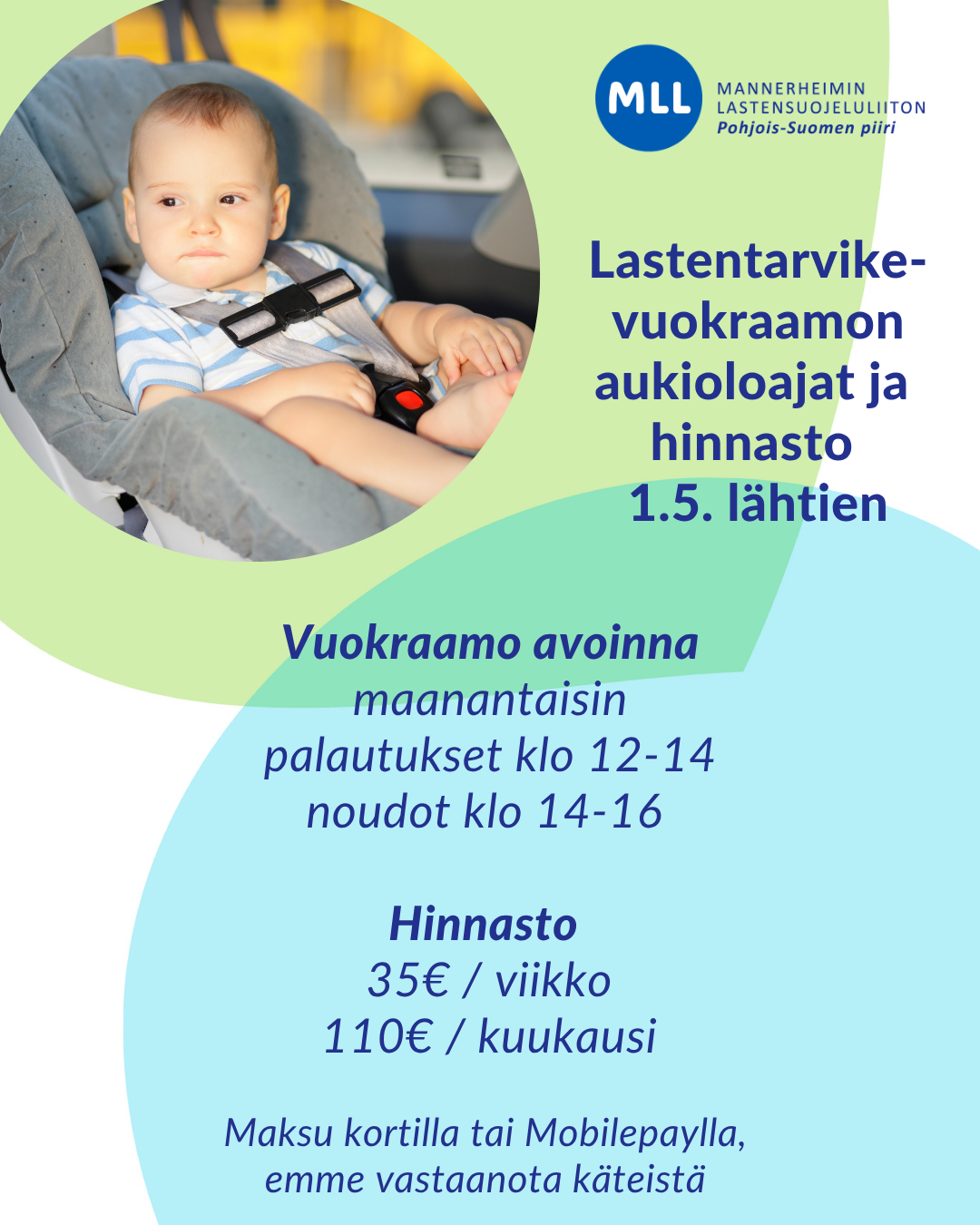 Oulun lastentarvikevuokraamon aukioloajat ja hinnasto muuttuvat 1.5.