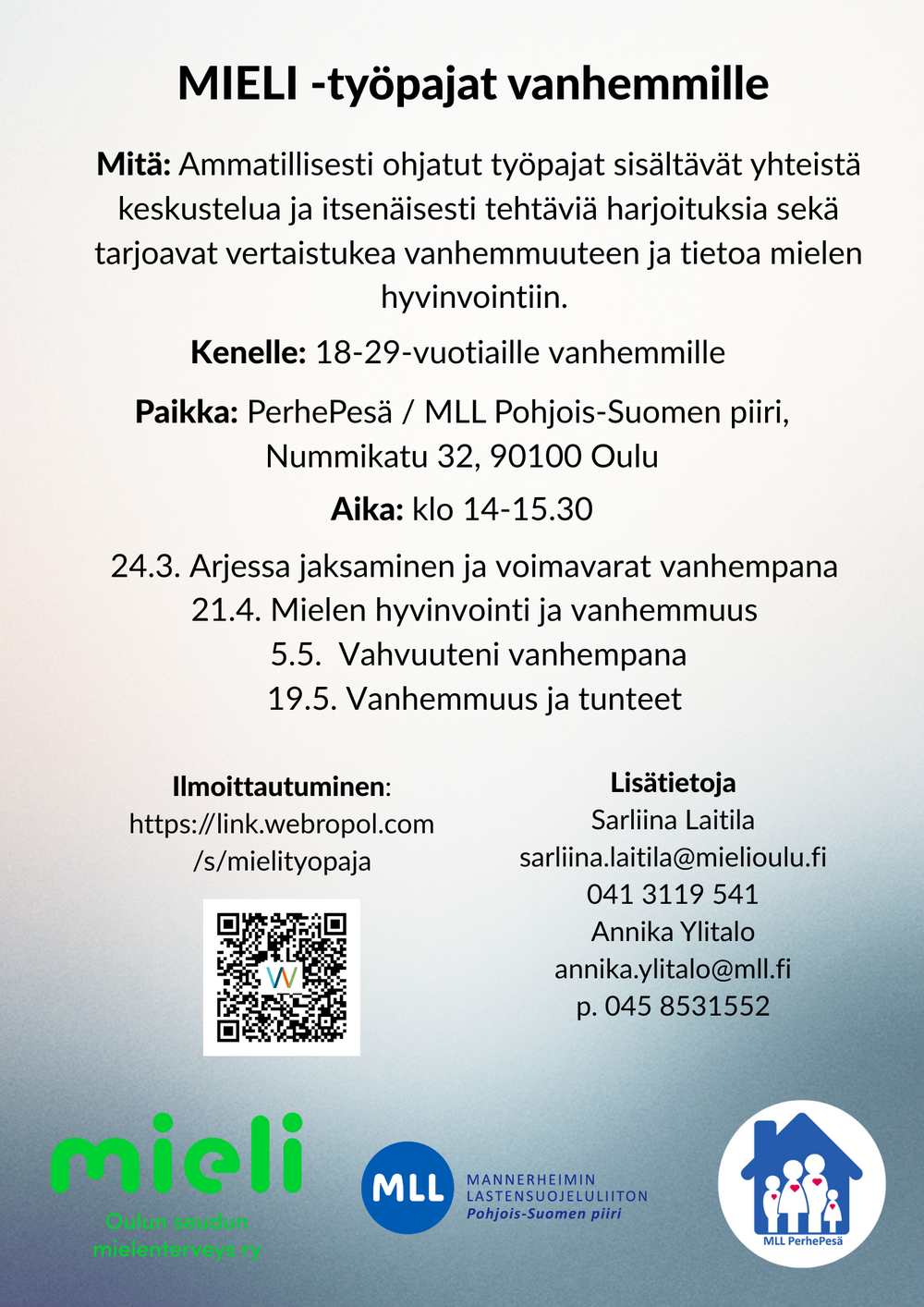 Mieli -työpajat nuorille vanhemmille Oulussa